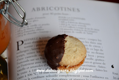 Setacciare insieme la farina, lo zucchero, la farina di mandorle e la vaniglia. Montare gli albumi a neve ed unirli alle farine e zucchero mescolando delicatamente dal basso verso l’alto. Con un sac a poche con bocchetta liscia n°8 fare delle palline di circa 1,5 cm. Spolverizzare con mandorle tritate e cuocere a 180°C per 15 minuti circa. Far raffreddare su una gratella, premere leggermente con il pollice sul fondo delle abricotines per creare un piccolo incavo, farcire con la confettura ed accoppiarle. Immergerle per metà nel cioccolato temperato.