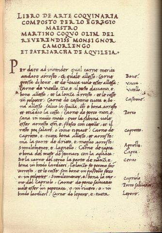 Un comitato scientifico, parte dell’Associazione Maestro Martino nata per coordinare il progetto, sta per costituirsi selezionando una serie di menù di piatti tipici che rispettano la tradizione. Martino, il più famoso e apprezzato cuoco del Quattrocento, fu conteso da re e porporati: cucinò alla corte degli Sforza e per il Patriarca di Aquileia e al Vaticano, e fu il primo a nominare la “polpetta” in un ricettario.