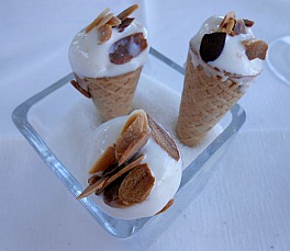 Si prosegue con due tris di “gelatini”: un tris aromatizzati allo zafferano, cannella e chiodi garofano e l’altro alle mandorle. Buonissimi e deliziose anche le cialde.