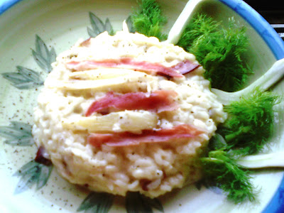 Nella ” sporta ” di Tiziana del blog Pecorella di marzapane , per il suo contest ” chef per un mese :prendi la sporta e porta “  realizzato in collaborazione con il giornale scelte di gusto  gli ingredienti indicati sono : riso, latte, peperoncino/pepe.La mia scelta è ricaduta su questo risotto allo speck e finocchio.