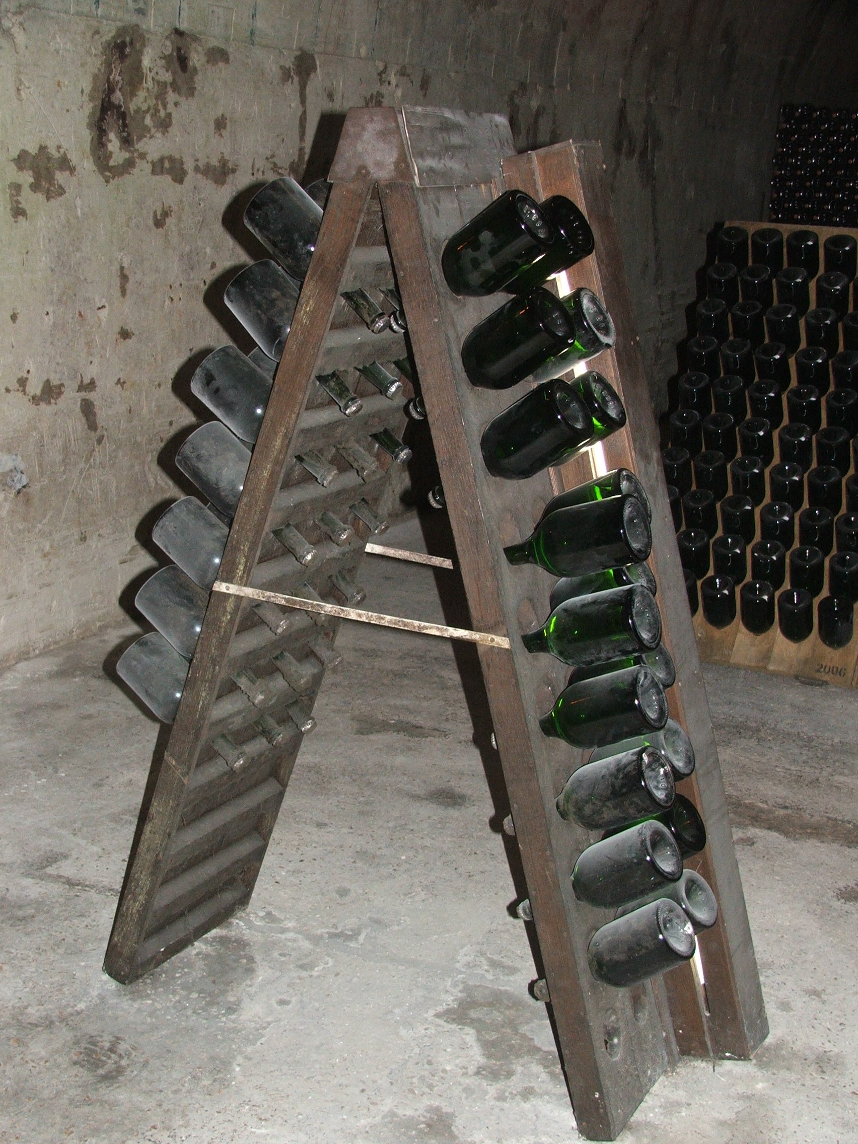 All’interno delle bottiglie, accatastate in posizione orizzontale in luoghi freschi e ventilati, avviene la rifermentazione in cui i lieviti demolendo gli zuccheri liberano nel vino la CO2 che rimane intrappolata all’interno delle bottiglie sottoforma di bollicine. La presa di spuma (seconda fermentazione) richiede tempi lunghi, più lungo è il tempo di rifermentazione, migliori saranno il perlage e il bouquet. A fine fermentazione, quando si sono raggiunte 5-6 atmosfere, inizia il periodo di maturazione e affinamento del vino sulle fecce (deposito formato dai lieviti), che va da 1 a 6 anni. Dopo il periodo di affinamento, le bottiglie vengono poste sulle pupitres, cavaletti di legno forati posti a 45 gradi. Sulle pupitres avviene il remuage, il passaggio delle bottiglie dalla posizione quasi orizzontale a quella verticale attraverso scuotimento e rotazione di 1/8 di giro per circa 40 giorni. Questa operazione permette di far depositare le fecce dei lieviti all’interno della bidule. Il cambiamento di posizione della bottiglia viene normalmente segnato con un gessetto.