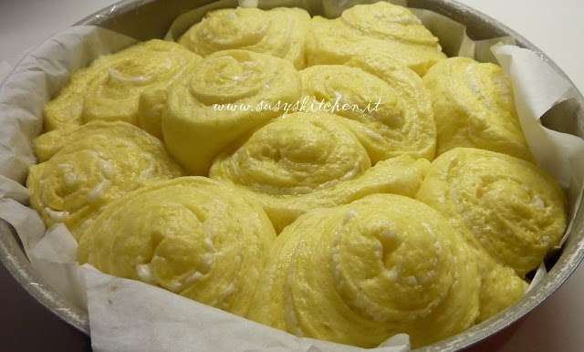 Distanziateli tra di loro di 2, 3 cm in modo circolare. Lasciate riposare in un posto caldo per 1 altra oretta o 40 minuti.